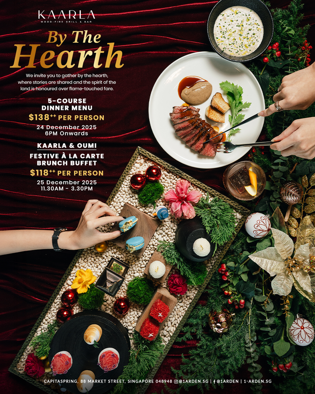 This Christmas, rise above the city and into the warmth of celebration at 1-Arden, where festive dining reaches new heights. Perched atop one of Singapore’s tallest green buildings, 1-Arden offers a sky-high rooftop experience like no other — with sweeping panoramic views, open-flame kitchens, and seasonally inspired menus that bring together the best of land, sea, and flame. Embracing the spirit of the holidays, this year’s theme By the Hearth invites guests to reconnect over glowing embers, honest flavours, and shared moments. From woodfired feasts to sparkling brunches and elegant dinners, each celebration is a tribute to warmth, togetherness, and the timeless joy of Christmas — all set against the glittering city skyline.