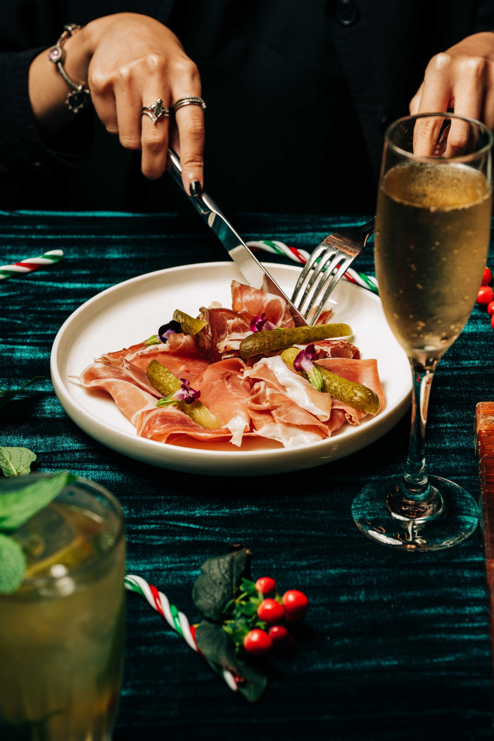 Celebrate the season with our limited-edition festive sips. Enjoy Fizz the Season, a sparkling mix of Cointreau, cranberry juice, and champagne; Grinch’s Nog, a creamy blend of white rum, coconut cream, Baileys, and pandan syrup; and Bourbon Bells, a warm mix of bourbon, honey, lime, and bitters.